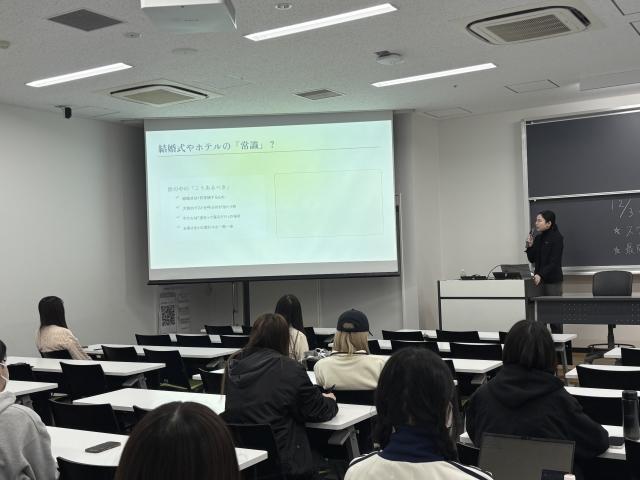 「日常」が「感動」に変わる瞬間をテーマに、宿泊に留まらないホテルイベントや多様化する結婚式の最新事例を紹介。デジタル化が進む今こそ、五感を通じた「リアルな体験」が圧倒的な価値を持つことを学びました。続くセッションでは、形のない「感動」をビジネスとして成立させる企画力と実現力を解説。特にブライダル事業の実例を通じ、自分自身が商材となって価値を創り出すやりがいを伝えていただきました。