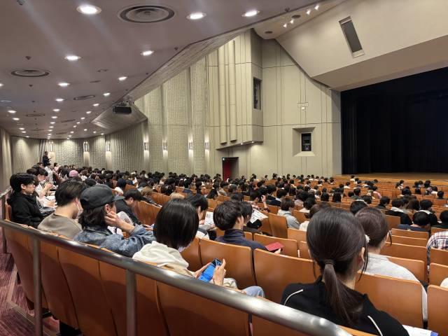 会場となった記念講堂は多くの学生で席が埋まり、選考事例や内定者のデータなどを熱心にメモを取る姿が見られ、2028年卒生の就職活動に対する意識の高さが感じられました。配布されたハンドブックを手に取り、今やるべきことを確認する学生たちの表情からは、漠然とした不安が具体的な行動の意欲へと変わっていく様子が伺えました。今後も、一人ひとりの進路決定を継続的にバックアップしてまいります。
