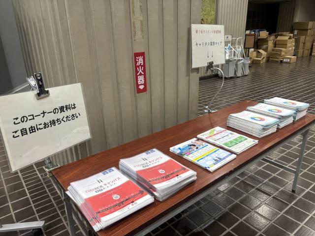 さらに、大学が提供するサポート機能を活用する仕組みについても詳しく紹介されました。無料で受験できる「マイナビWeb模擬テスト」による筆記試験対策や、先輩たちの貴重な選考体験記を閲覧できる「駒キャリ」の紹介など、効率的に準備を進める流れが示されました。参加者には、スケジュール管理やマナー、企業研究のやり方が一冊に凝縮された「キャリアハンドブック」や、駒大生に人気の企業の内定者エントリーシート事例集が配布されました。
