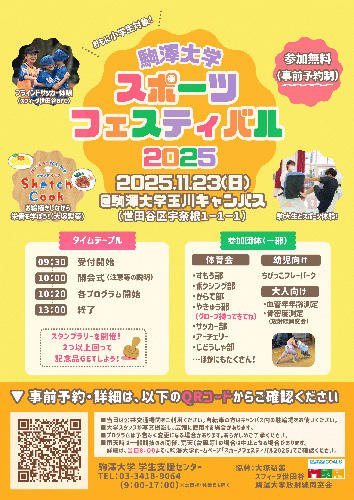 参加申込 | 下記フォームよりお申し込みください。 駒澤大学スポーツフェスティバル2025参加申し込みフォーム |