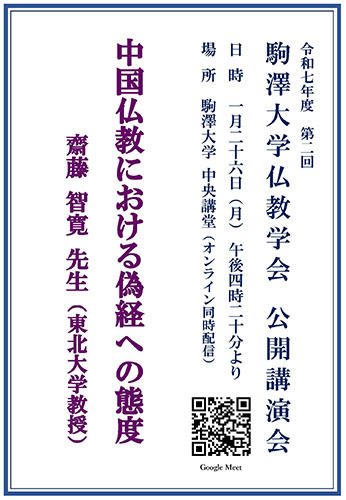 | 令和7年度第2回駒澤大学仏教学会公開講演会のお知らせ | |
