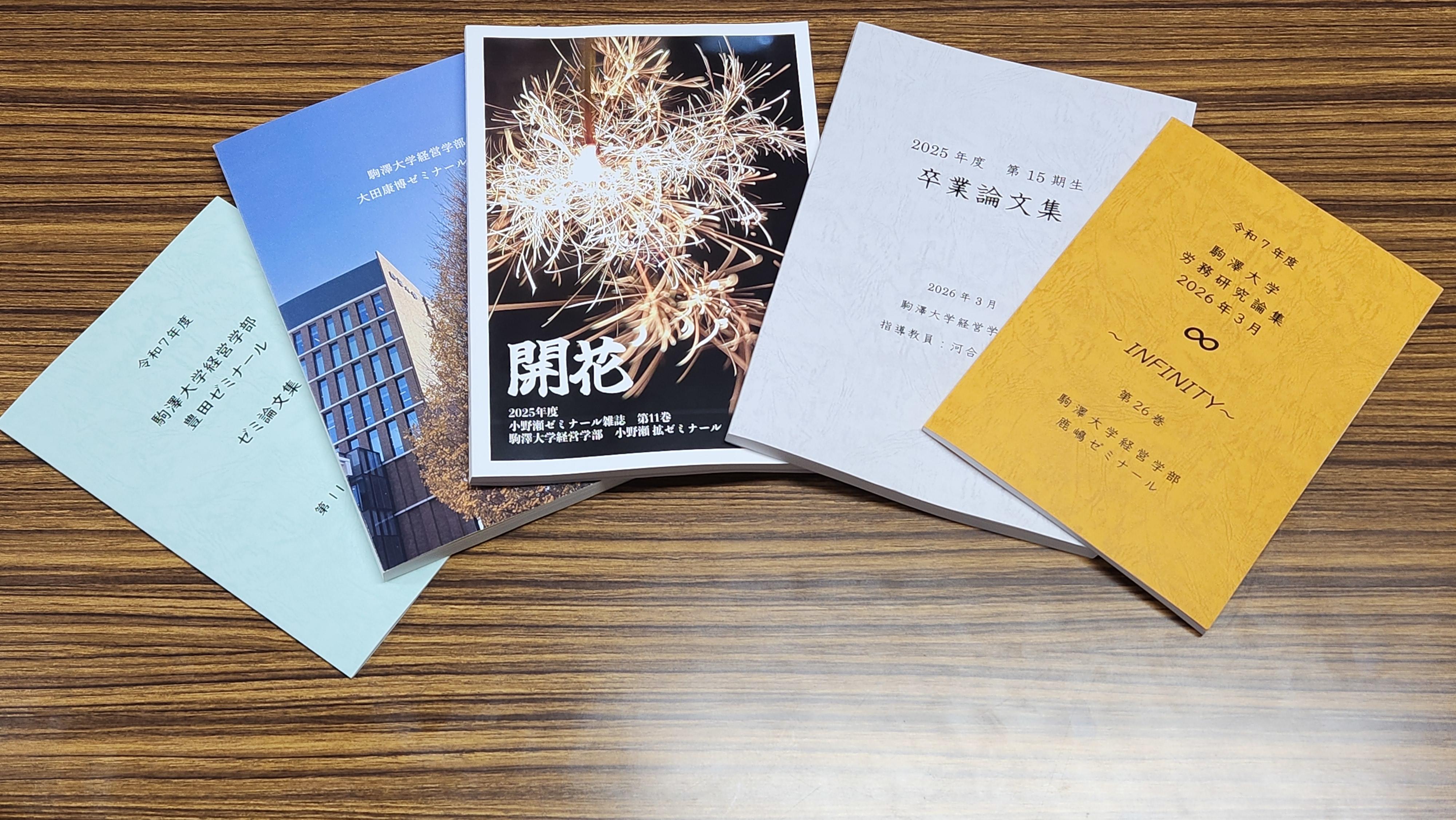 駒澤大学経営学部では、卒業論文は各ゼミで論集を発行するスタイルを採用しています。今年度も各ゼミの卒論集が完成しました。